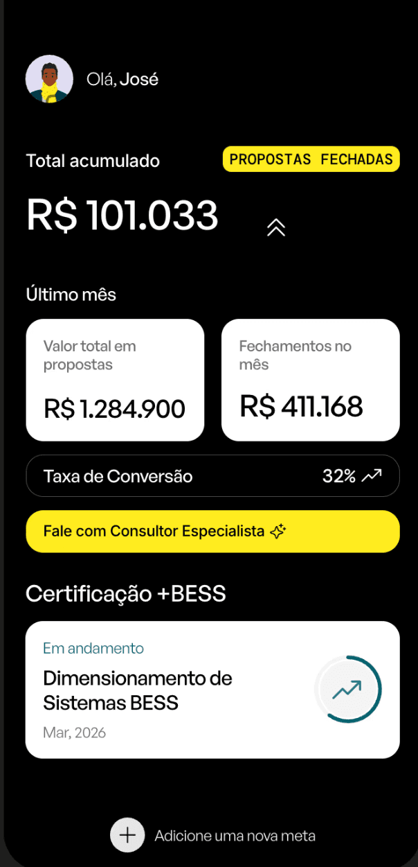 A maioria dos integradores faz sua primeira venda em 2-3 semanas após inscrição. A Academy leva 2 semanas para completar, e você já pode gerar propostas enquanto aprende.